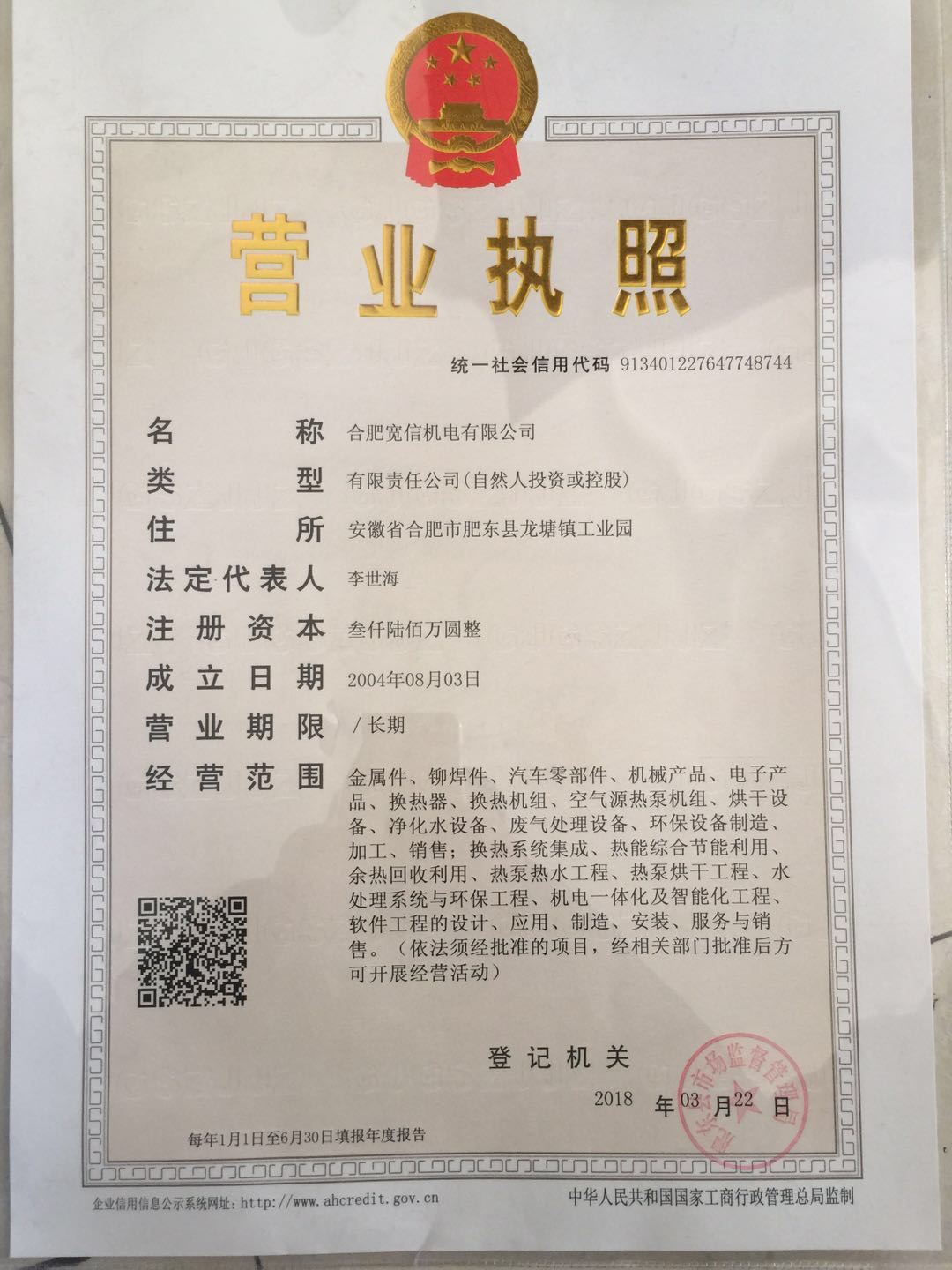 合肥寬信機(jī)電有限公司成立于2002年,是從事熱交換器、余熱回收、煙氣廢氣熱回收與凈化處理、熱泵機(jī)組及其應(yīng)用、汽車零部件研發(fā)、制造、銷售與工程服務(wù)為一體的高新技術(shù)企業(yè)。公司位于合肥上海產(chǎn)業(yè)園,占地60畝,擁有40000多平方米標(biāo)準(zhǔn)化工業(yè)廠房,10000多平方米研發(fā)、營(yíng)銷、服務(wù)綜合樓,各類生產(chǎn)、檢測(cè)、實(shí)驗(yàn)設(shè)備300多臺(tái)套,科研技術(shù)開發(fā)團(tuán)隊(duì)50多人,自主知識(shí)產(chǎn)權(quán)及國(guó)家專利和研究成果60多項(xiàng),在熱交換器、余熱回收、熱泵機(jī)組應(yīng)用、廢氣凈化處理方面都具有較強(qiáng)的實(shí)力。